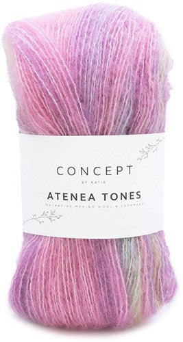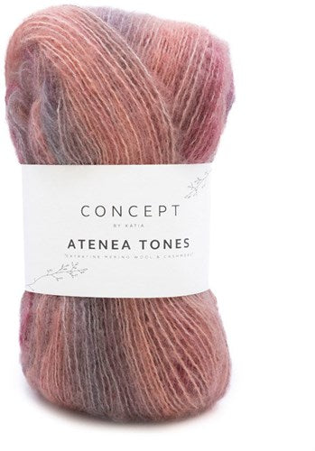 Atenea wool from Concept by Katia, a combination of extrafine virgin merino wool, mako cotton and cashmere. Katia Concept Atenea Tones is an exquisite fingering yarn ideal for knitting very light garments with a soft, brushed feel. It creates a similar finish to mohair, without the need for holding double.
