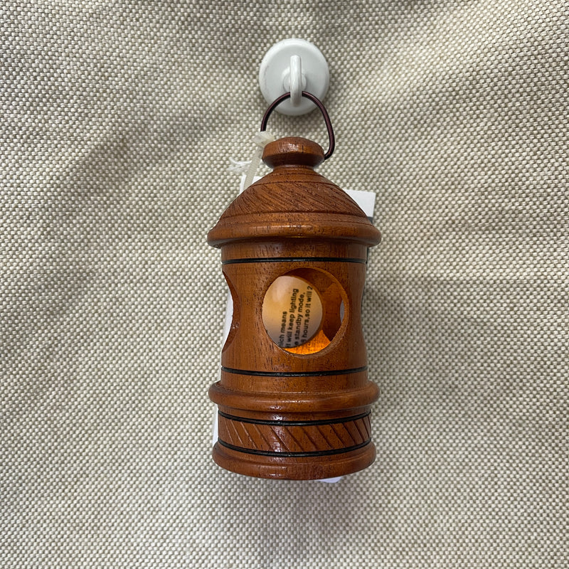 Whimsical and beautiful hand turned lantern made by local artist David Earls. Using found woods in his Pinole CA workshop, David hand turns each charming lantern.