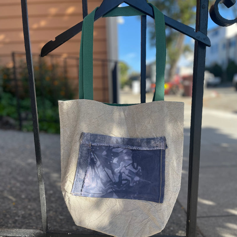 Hand dyed and hand sewn tote bags made by Nancy Kane in her Berkeley studio.