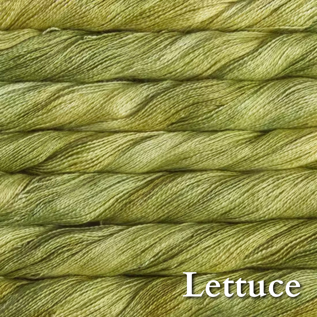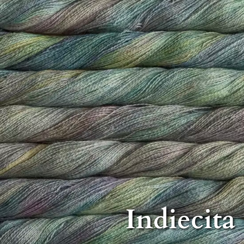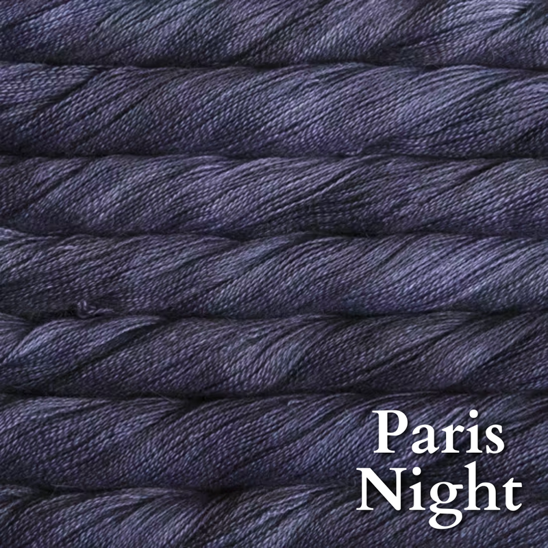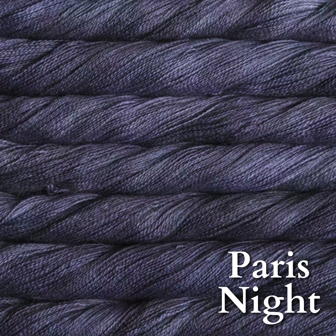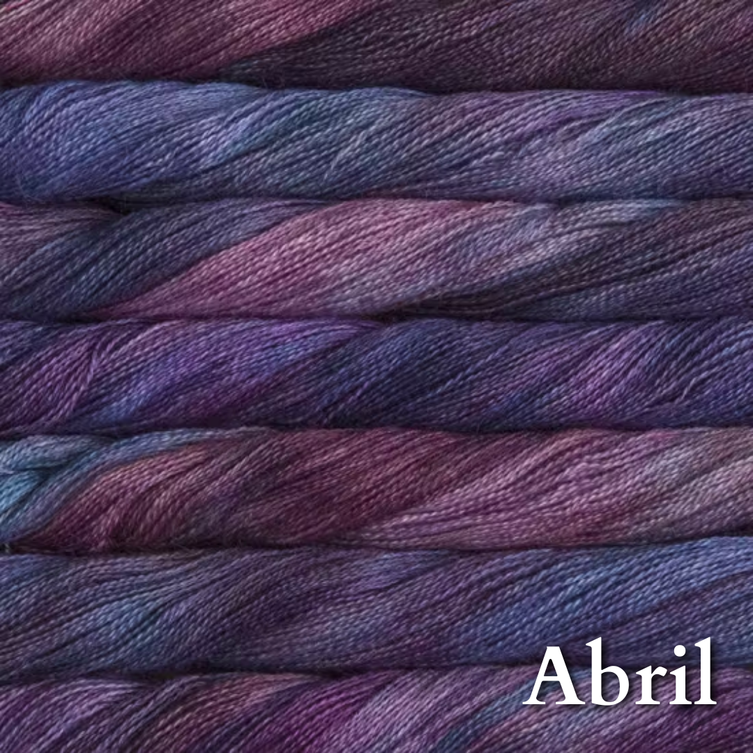 70% baby alpaca 30% silk in Malabrigo's gorgeous color palette. Add some to a fingering or dk project for that luscious glow and bloom.