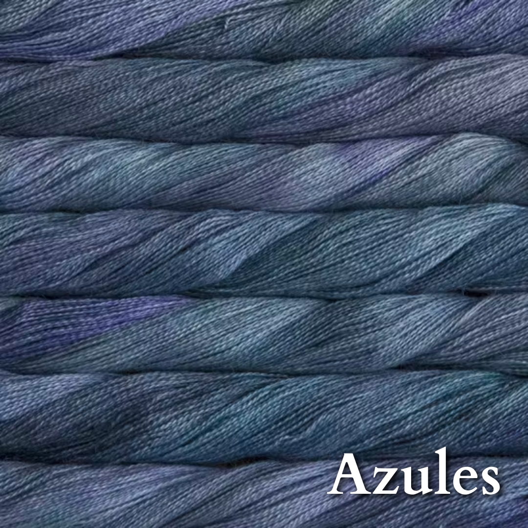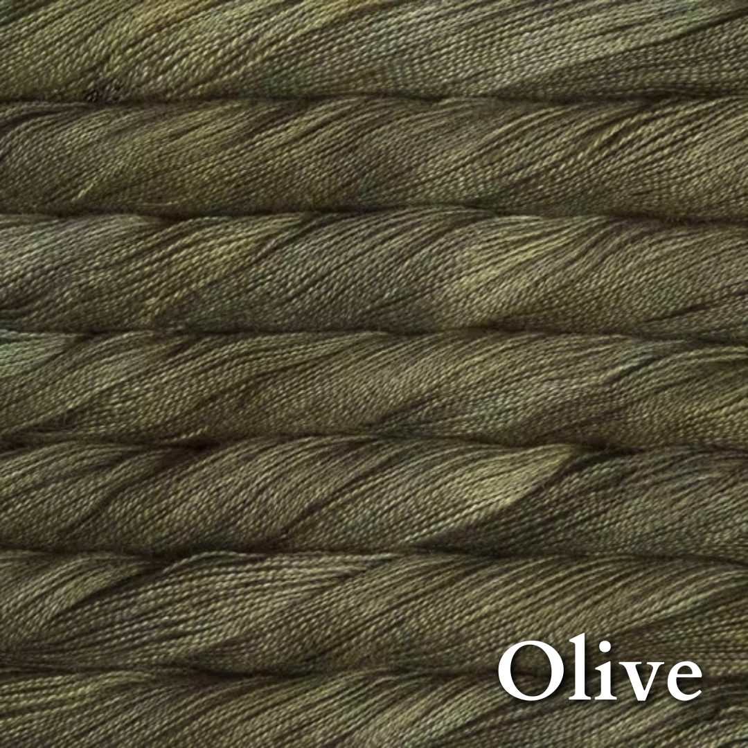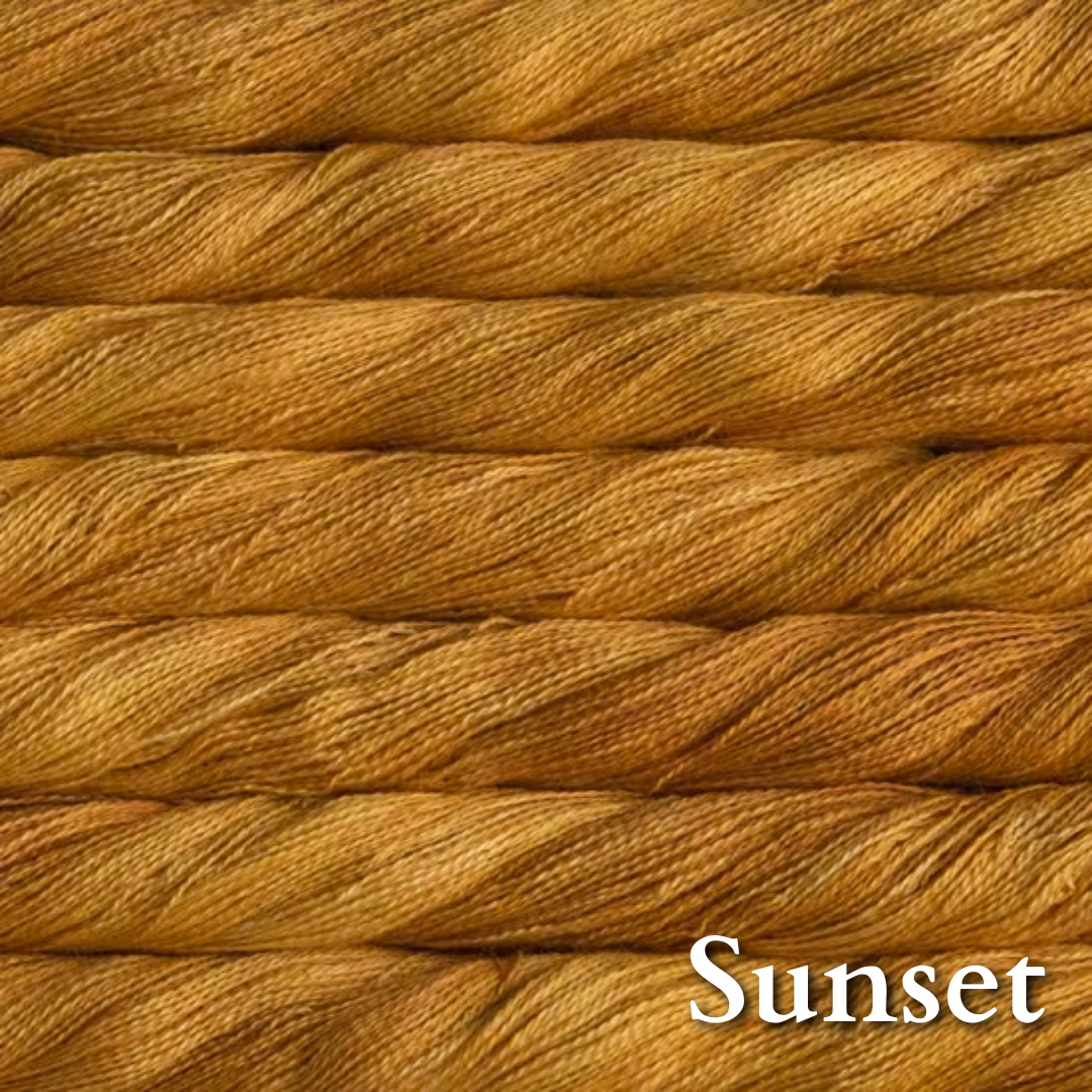 70% baby alpaca 30% silk in Malabrigo's gorgeous color palette. Add some to a fingering or dk project for that luscious glow and bloom.