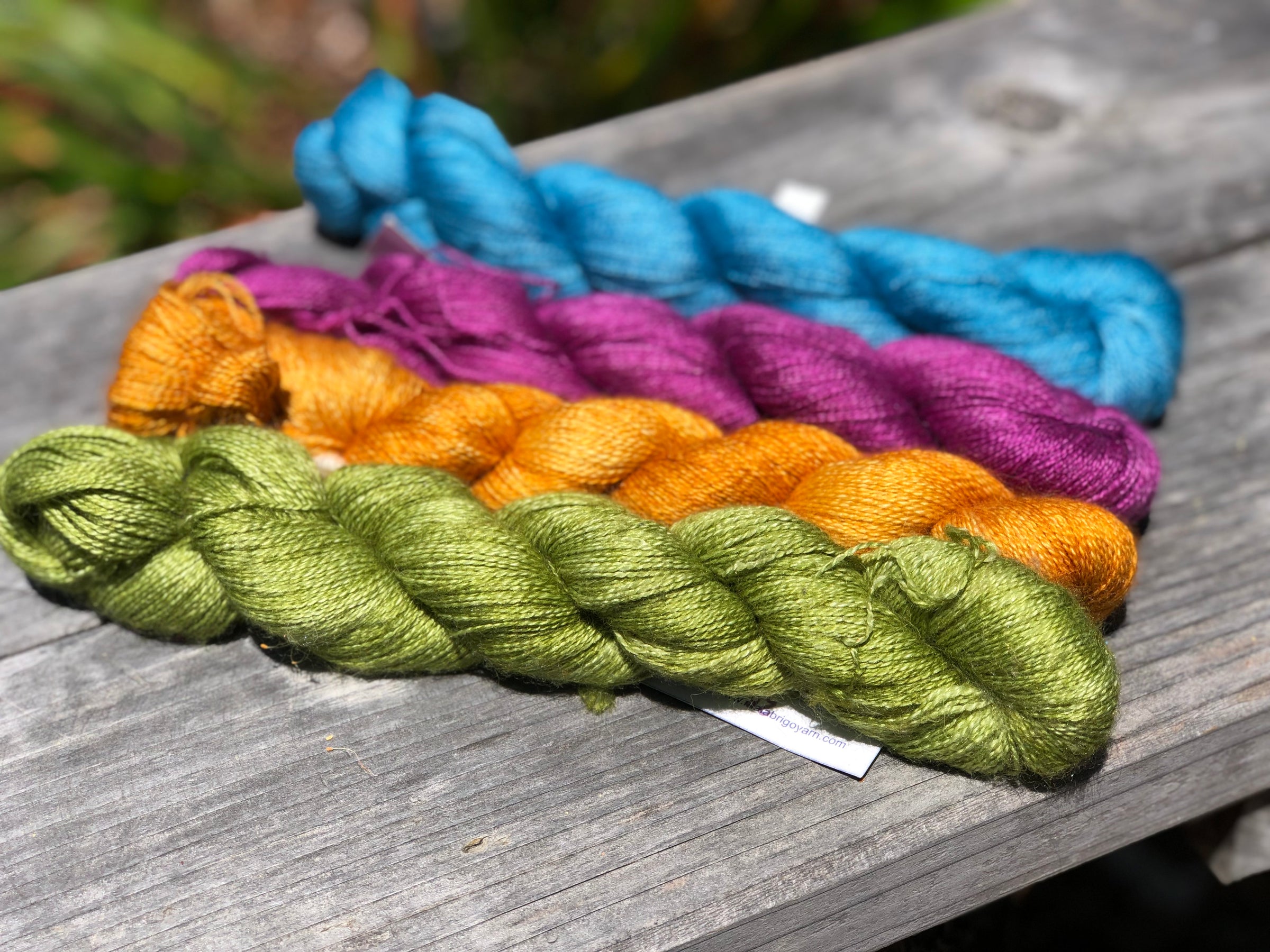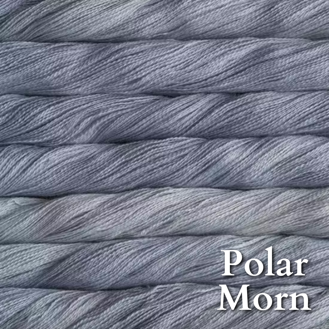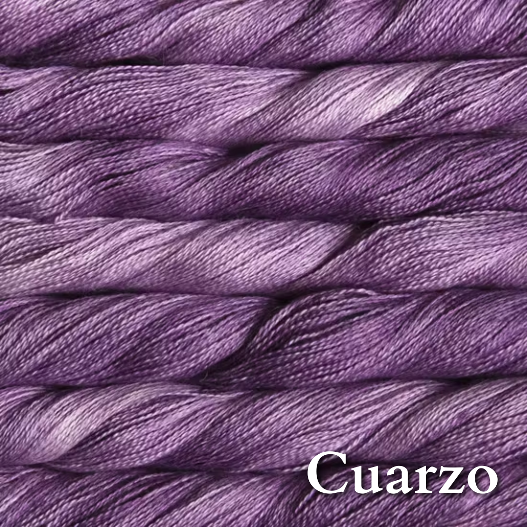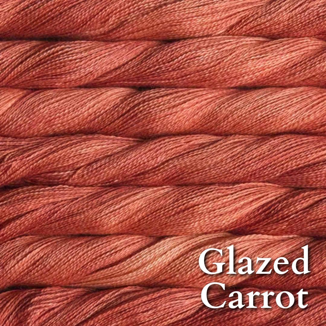 70% baby alpaca 30% silk in Malabrigo's gorgeous color palette. Add some to a fingering or dk project for that luscious glow and bloom.