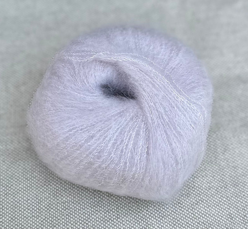 Gorgeous sparkly soft yarn to make elegant accessories and garments! Use by itself, or carry it with another yarn to add subtle sparkle and shimmer to your project.
