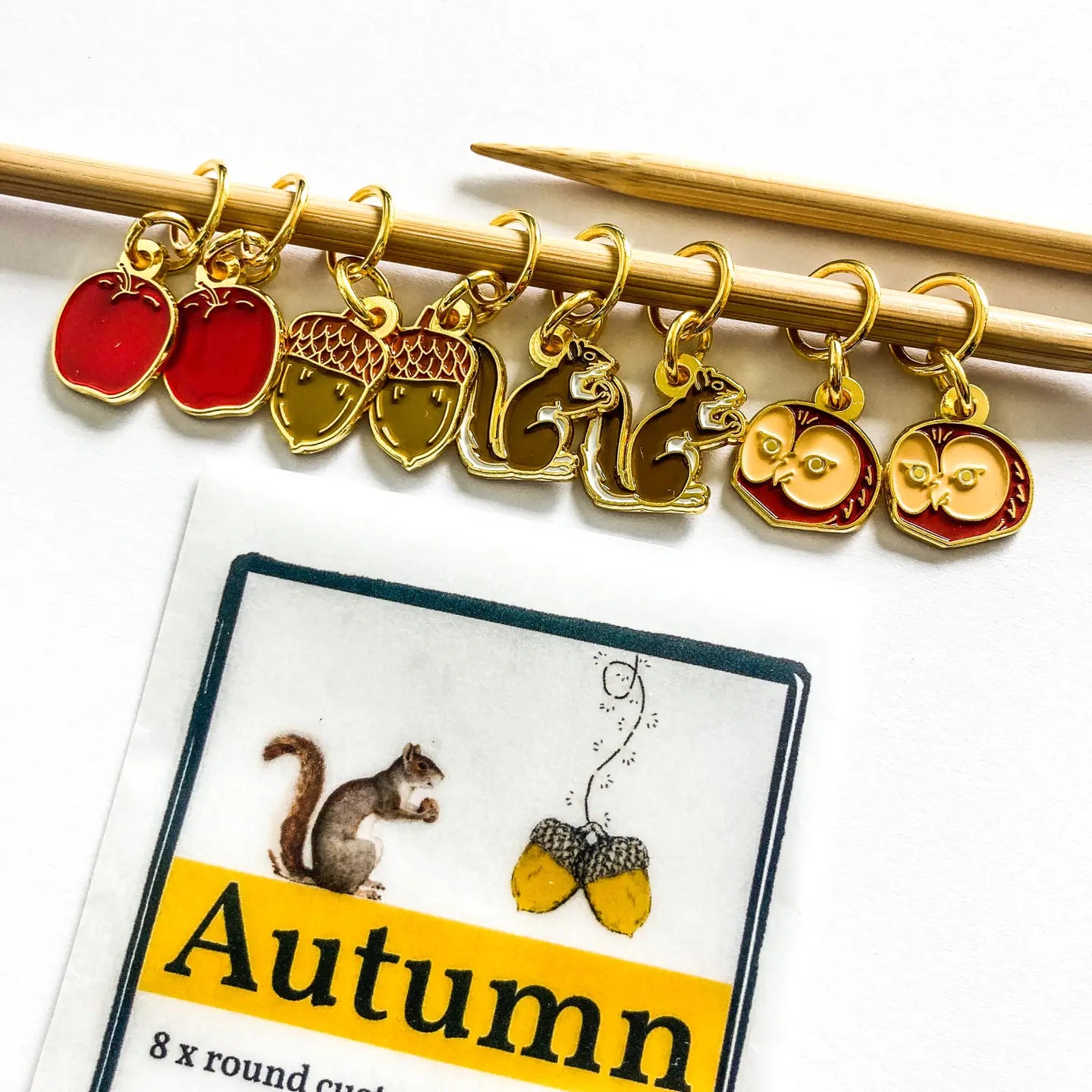 The AUTUMN pack in my series of seasonal stitch markers. It includes: 2 x apples 2 x owls 2 x squirrels 2 x acorns