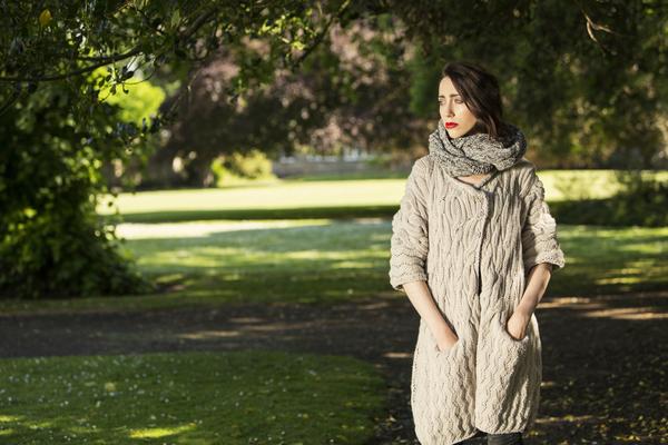 Inspired by the Irish Pirate Queen, Grace O'Malley, who famously held detente with Queen Elizabeth 1st, sailing up the river Thames with her Fleet to meet and form an alliance. It was reported at the time that she was wearing a rather ragged green cloak...I felt it was time to give her a sartorial makeover for the visit! Fabulous patterning, dropped stitch cables, herringbone, Zig Zag travelling lace and linen stitch...knitted in one piece, with pockets. This can be knitted in a single colour, or by choosing 2 colours, half quantities of each, a tweed effect...e.g silver birch and agate, coral and jasper...see photos.....