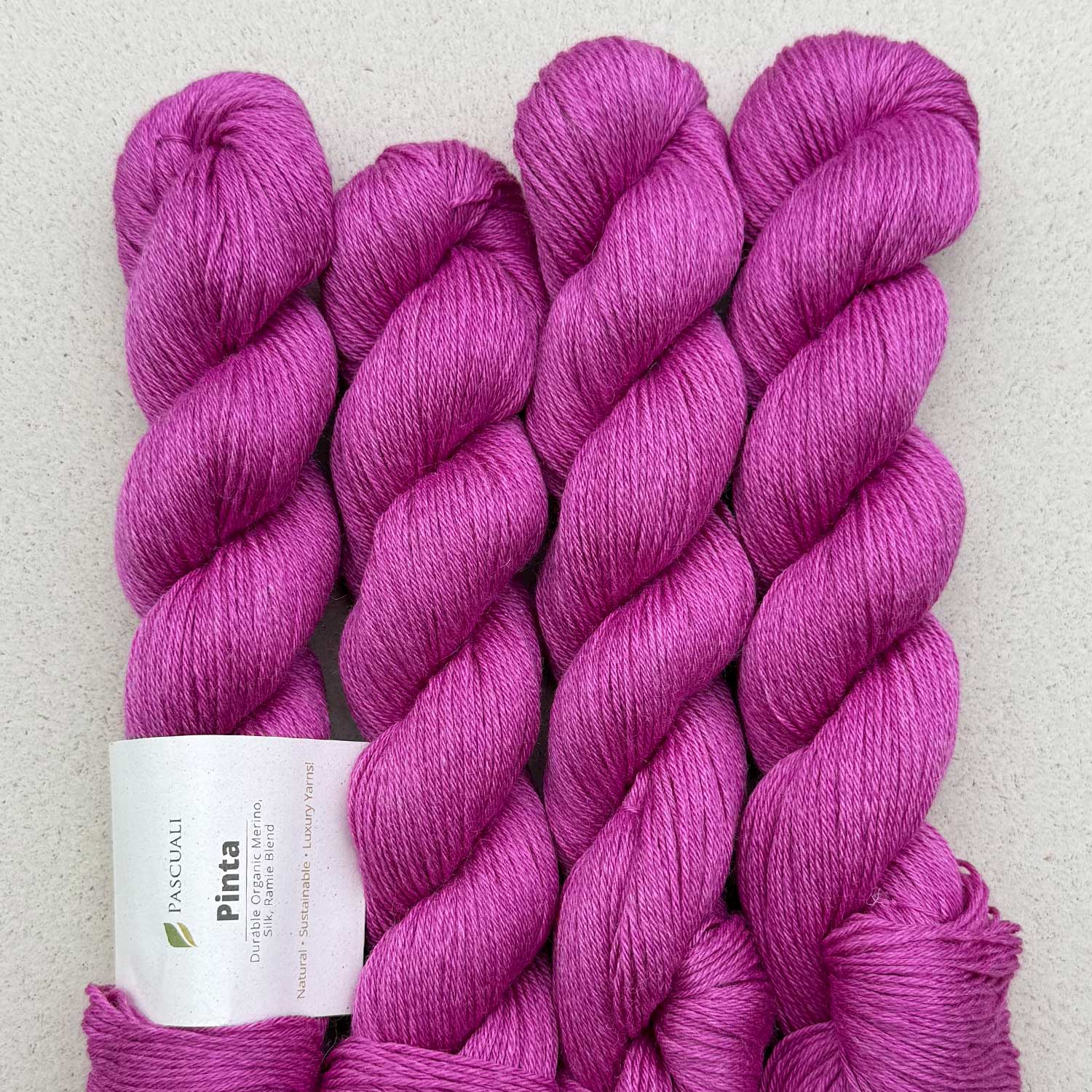 What distinguishes Pinta from other yarns is its very unique composition: 60% merino, 20% silk and 20% ramie. We source our merino wool from Patagonia. It is mulesing free and is RWS (Responsible Wool Standard) certified. The mulberry silk gives it a glossy shine and smoothness. It gets its robustness from its other very special ingredient: ramie, an eco-friendly fibre, highly sustainable and a very good alternative to synthetic fibres, is a plant fibre of the nettle family noted for its length and toughness.