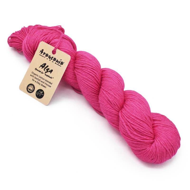Araucania Alga is a brand new yarn with incredible drape, and a cool feeling and beautiful colors. The round structure of the yarn provides great stitch definition.