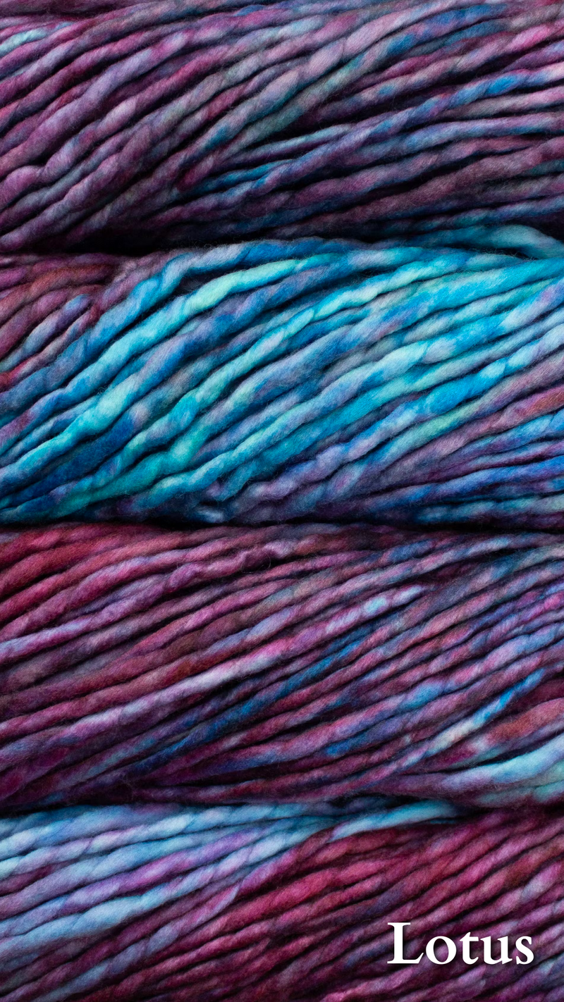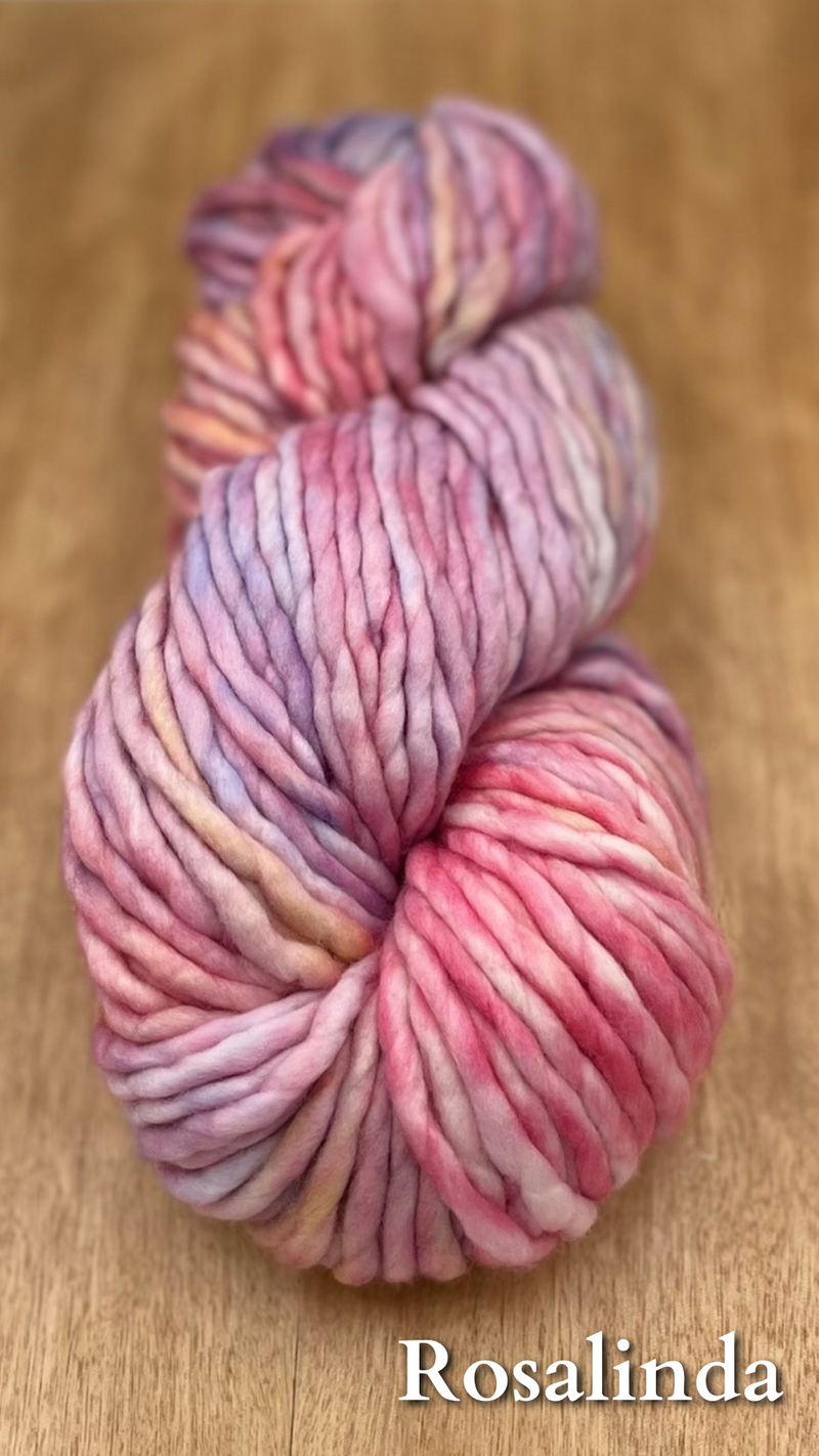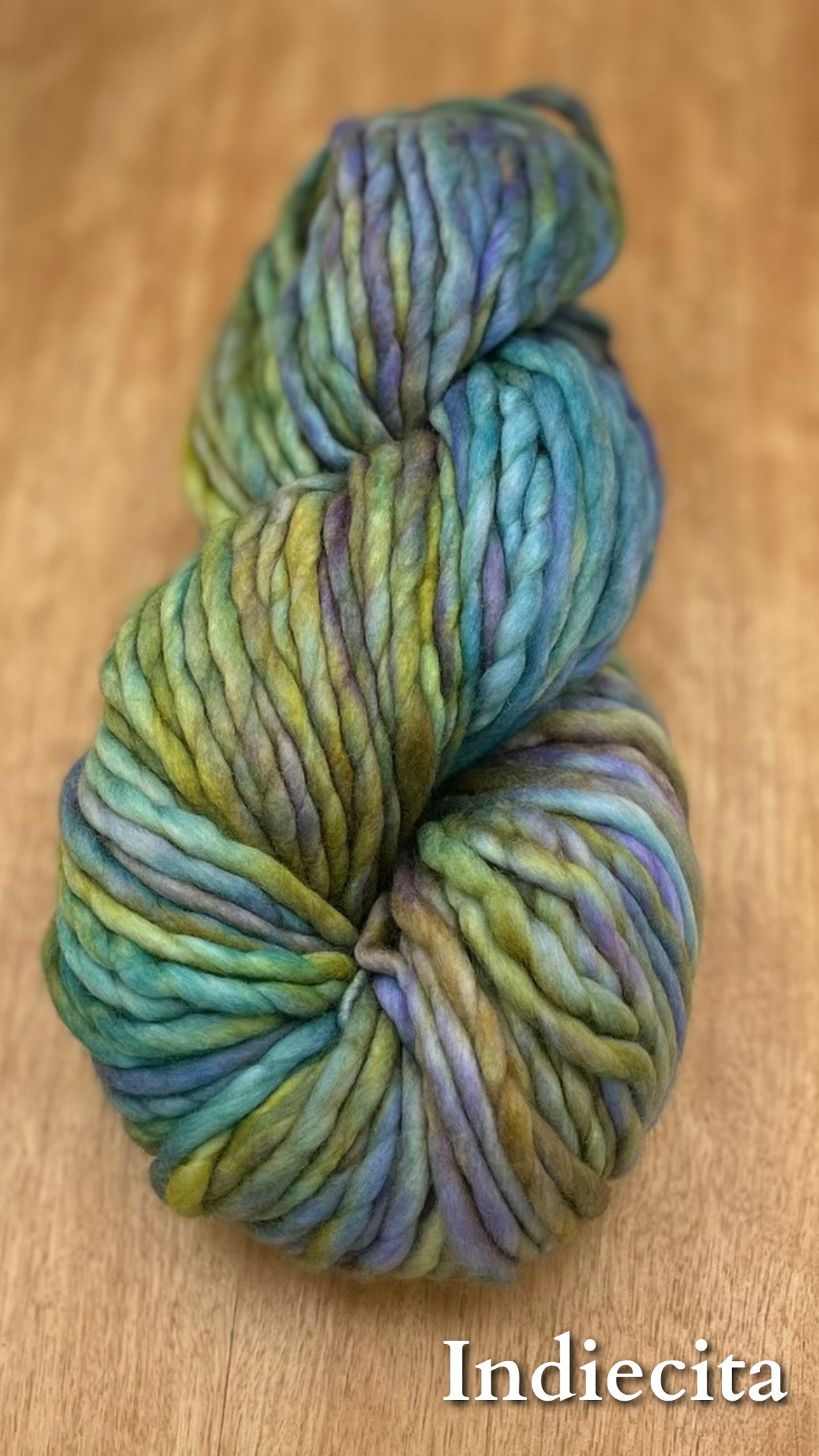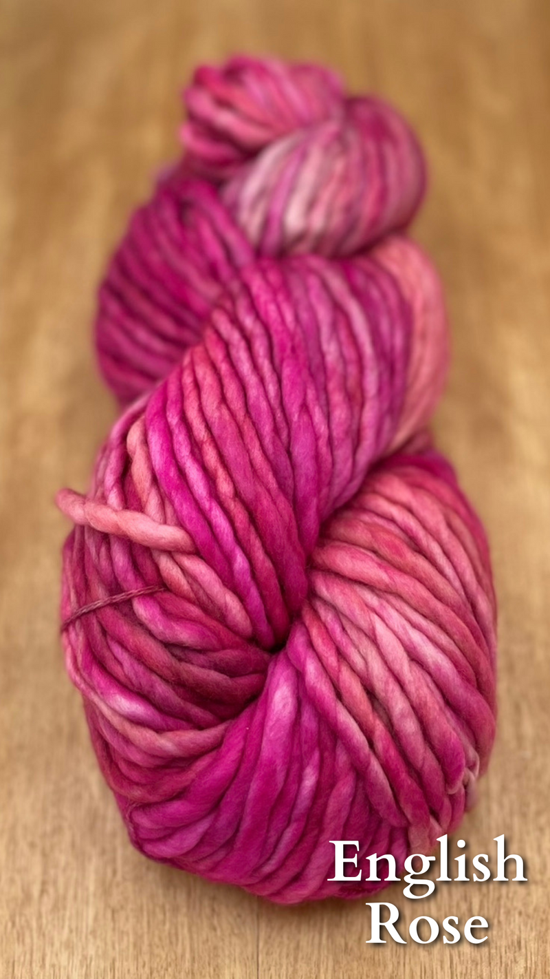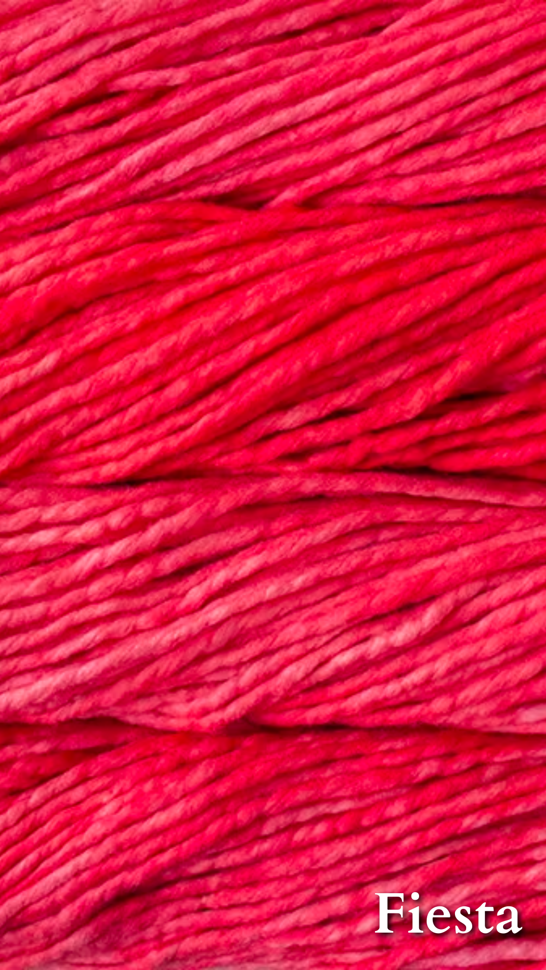 All the gorgeous colors that Malabrigo is known for in a beautiful handdyed bulky single plied yarn.