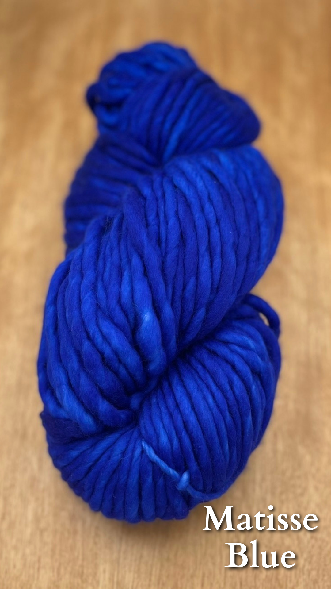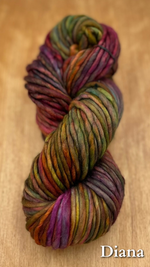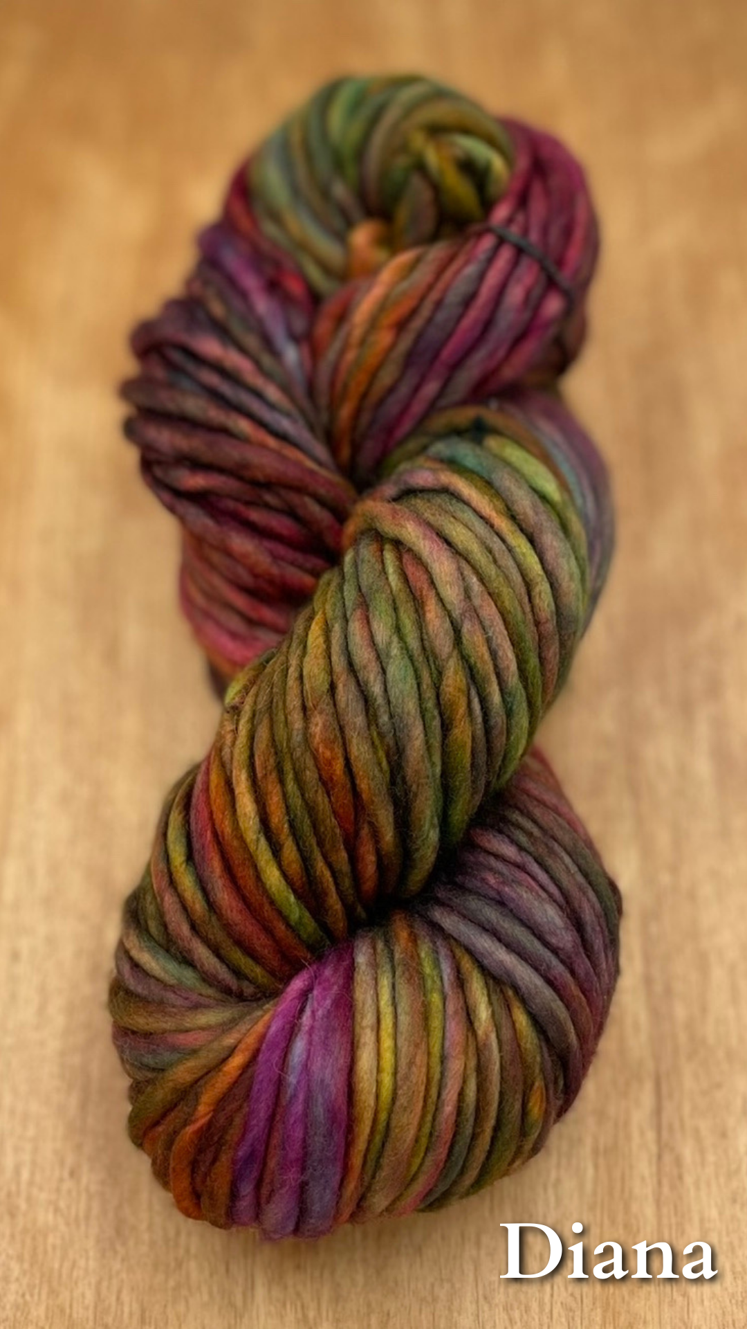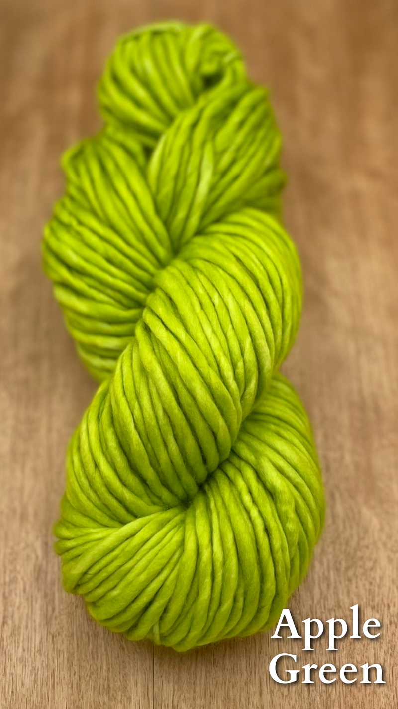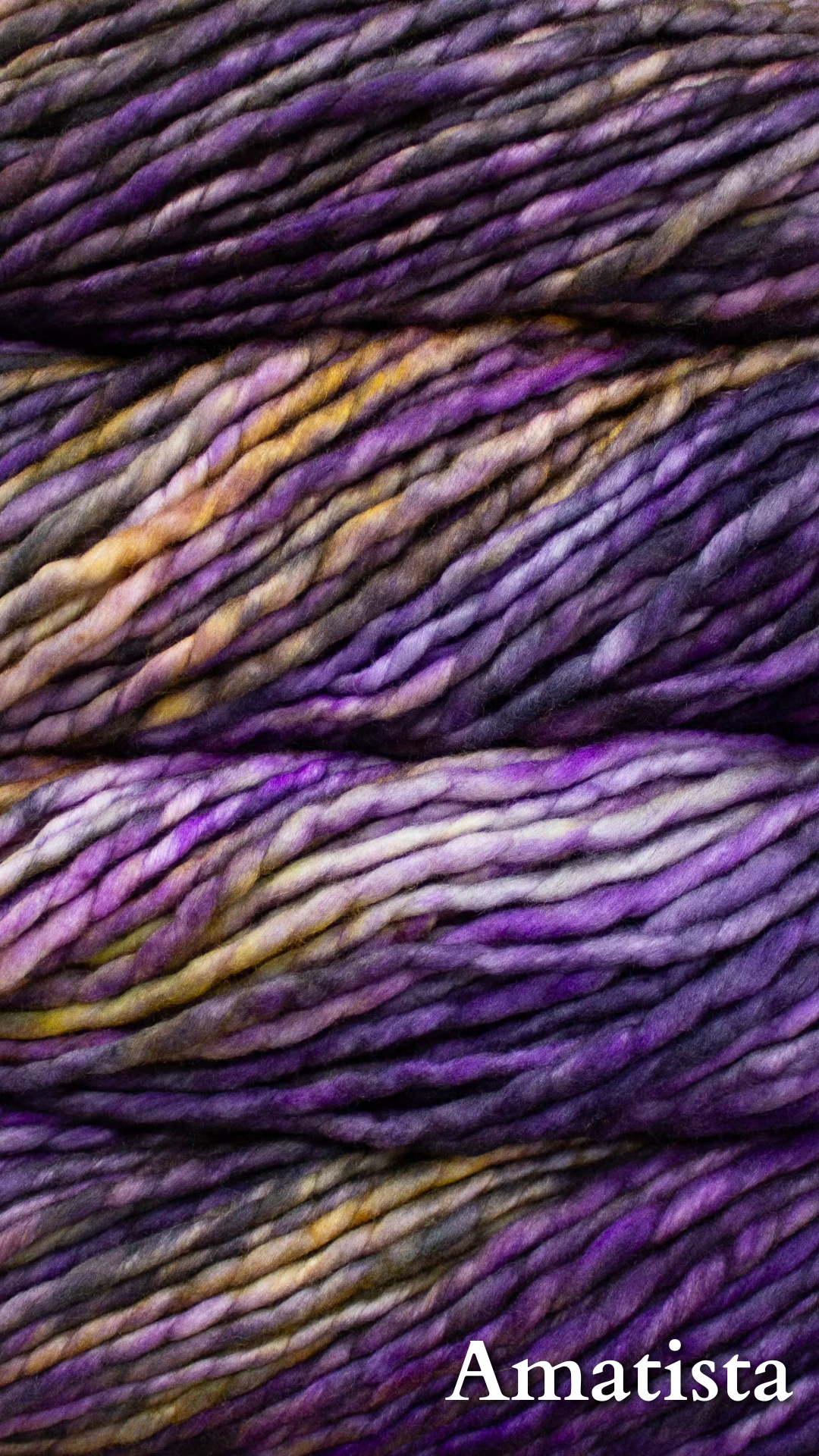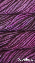 All the gorgeous colors that Malabrigo is known for in a beautiful handdyed bulky single plied yarn.