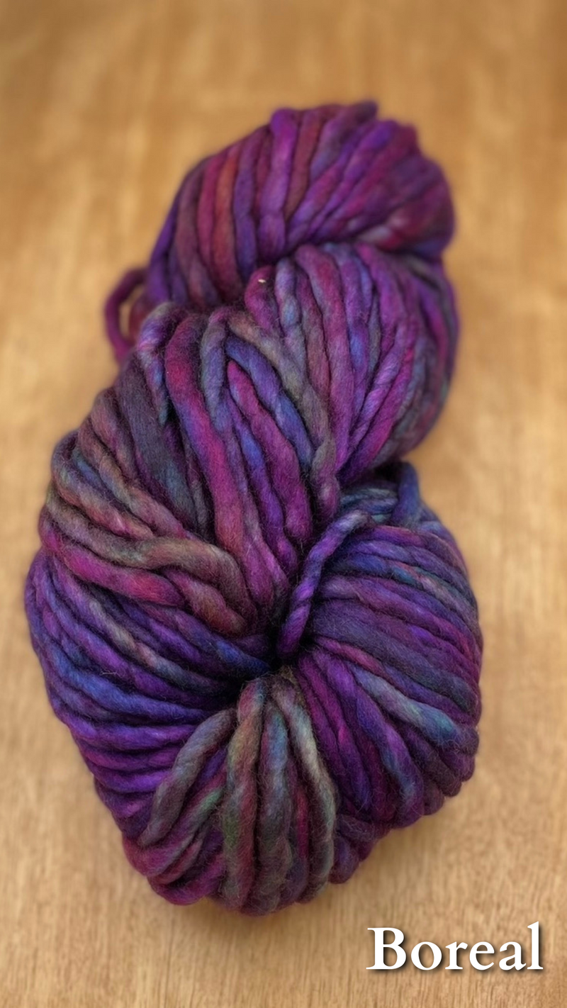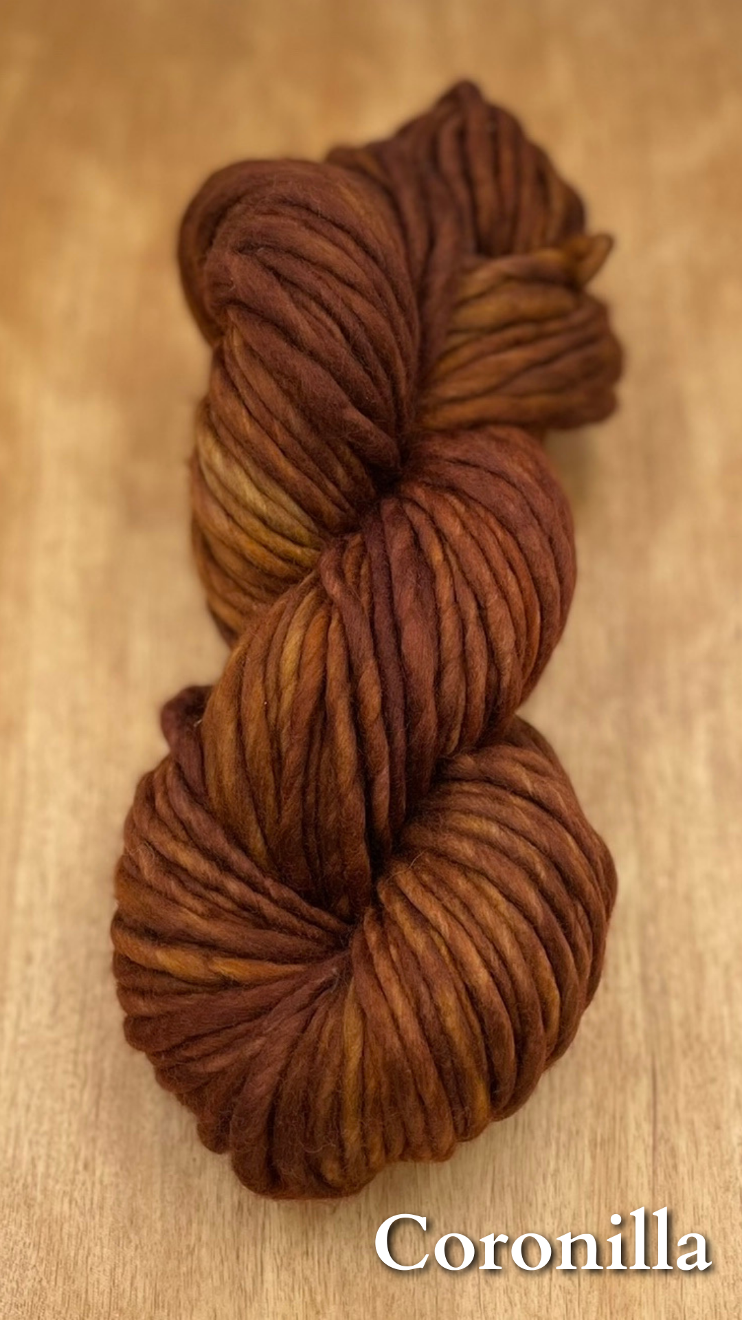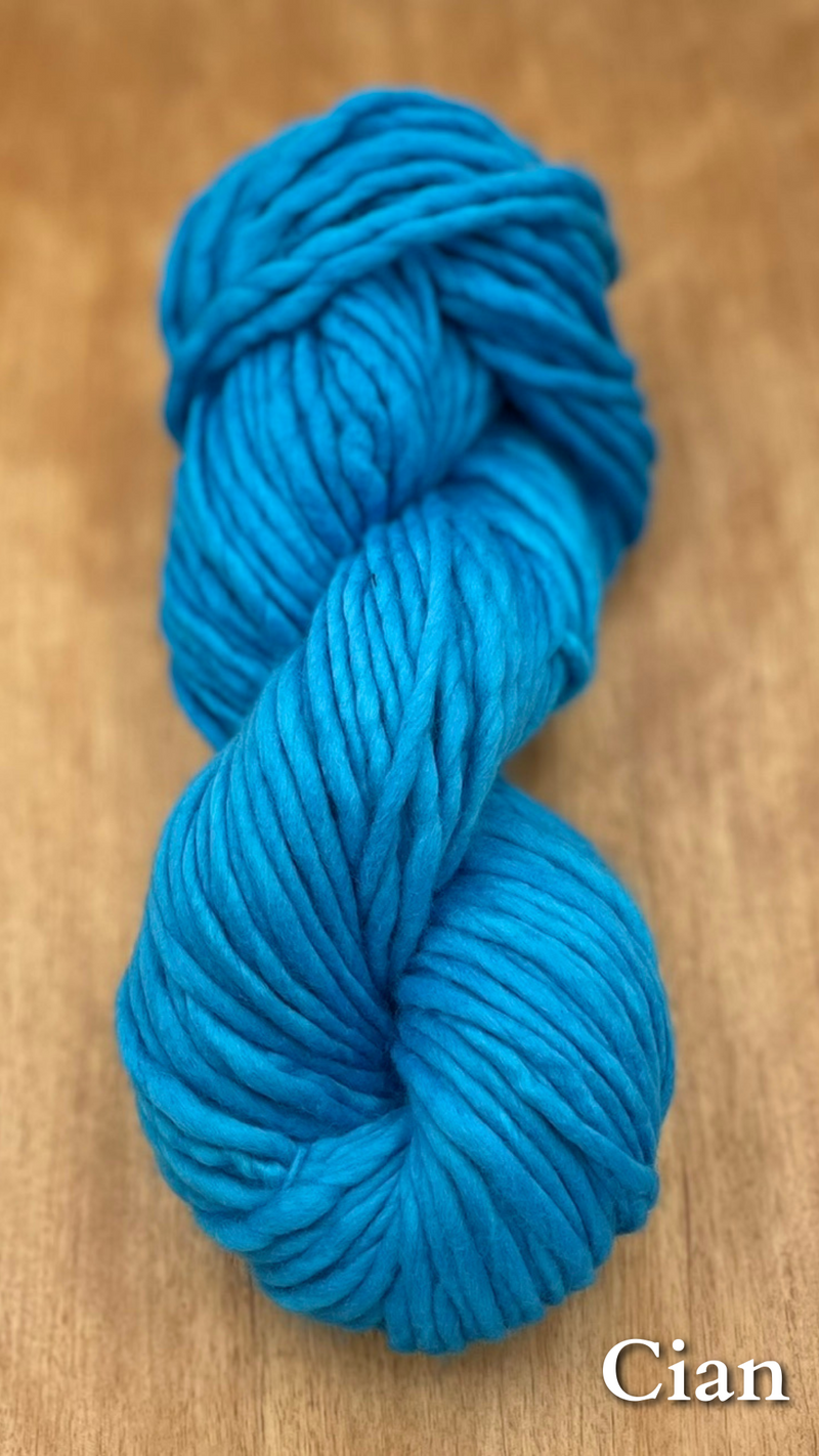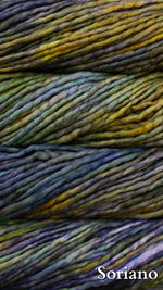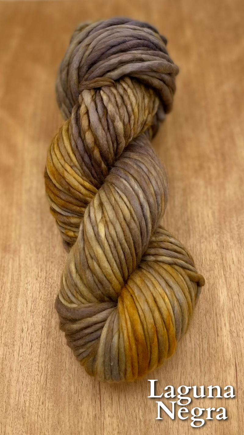 All the gorgeous colors that Malabrigo is known for in a beautiful handdyed bulky single plied yarn.