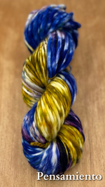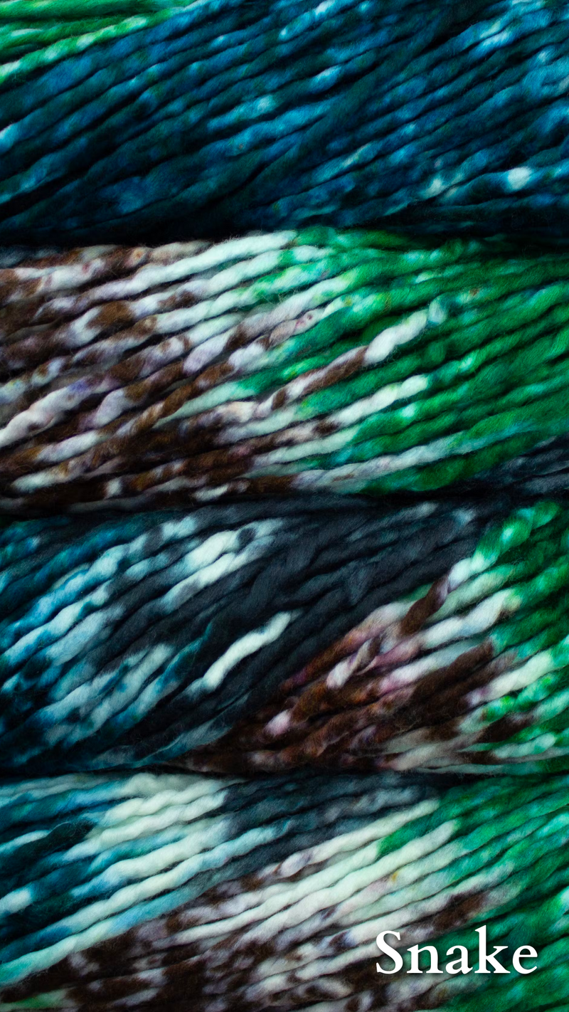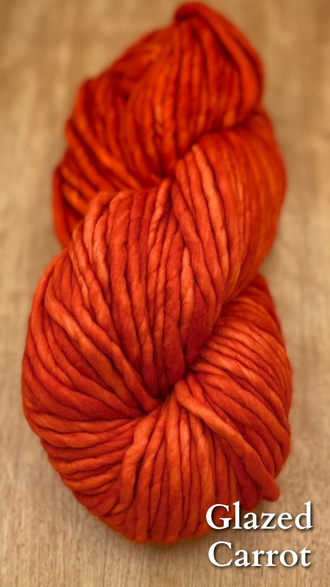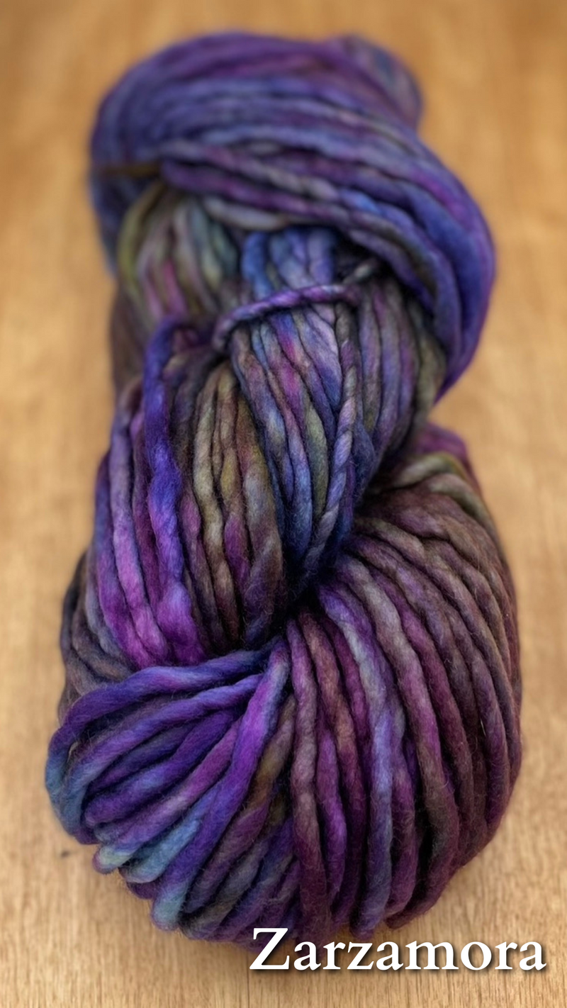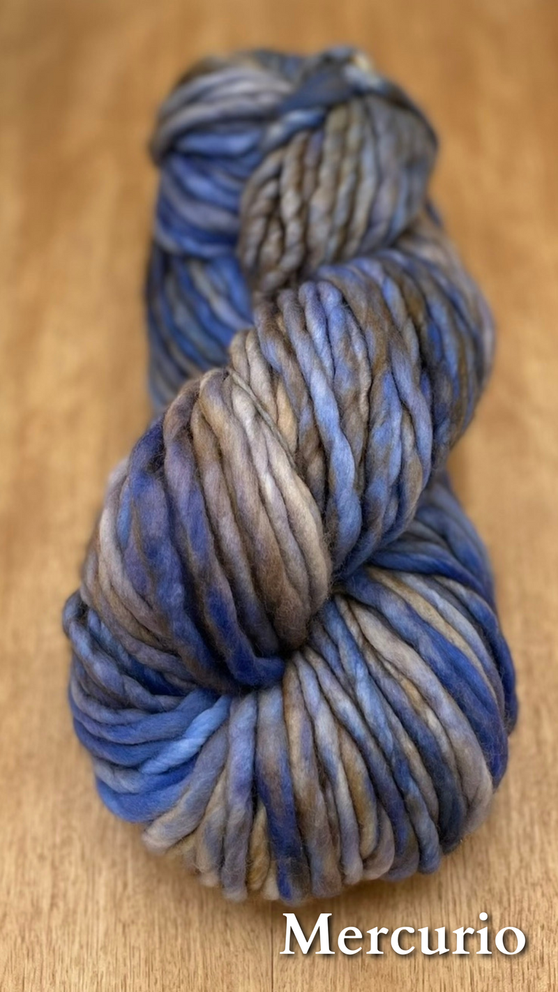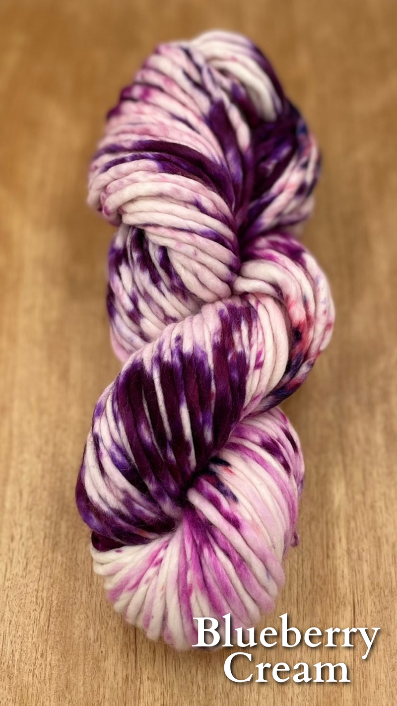 All the gorgeous colors that Malabrigo is known for in a beautiful handdyed bulky single plied yarn.