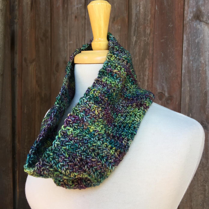 You’ll learn a few basic stitches while starting to make a cowl (also known as an infinity