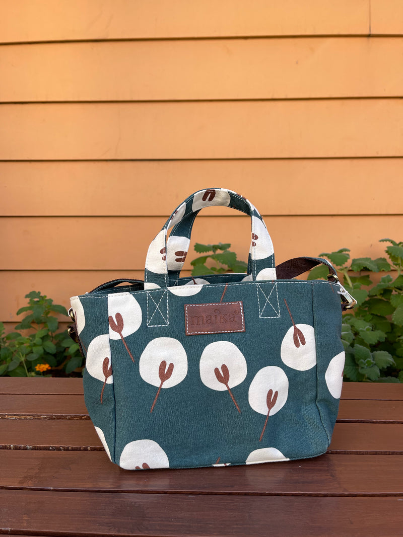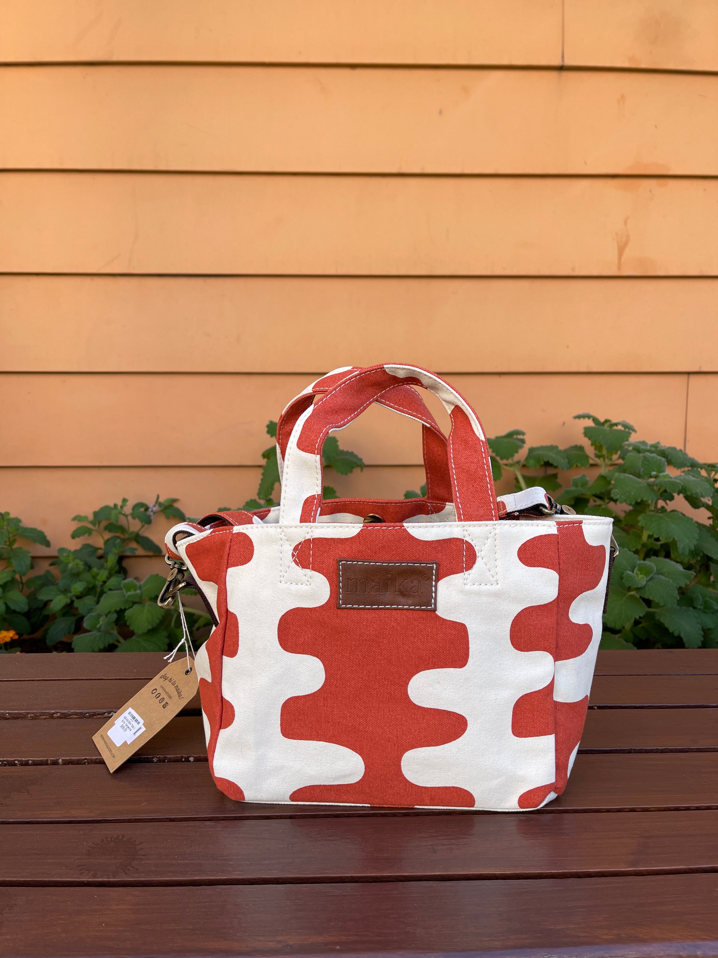 Hand-drawn, Hand-printed. Dimensions 9" x 7.5" x 5.5" Strap length: 52” adjustable Care Instructions Spot-clean gently as needed.