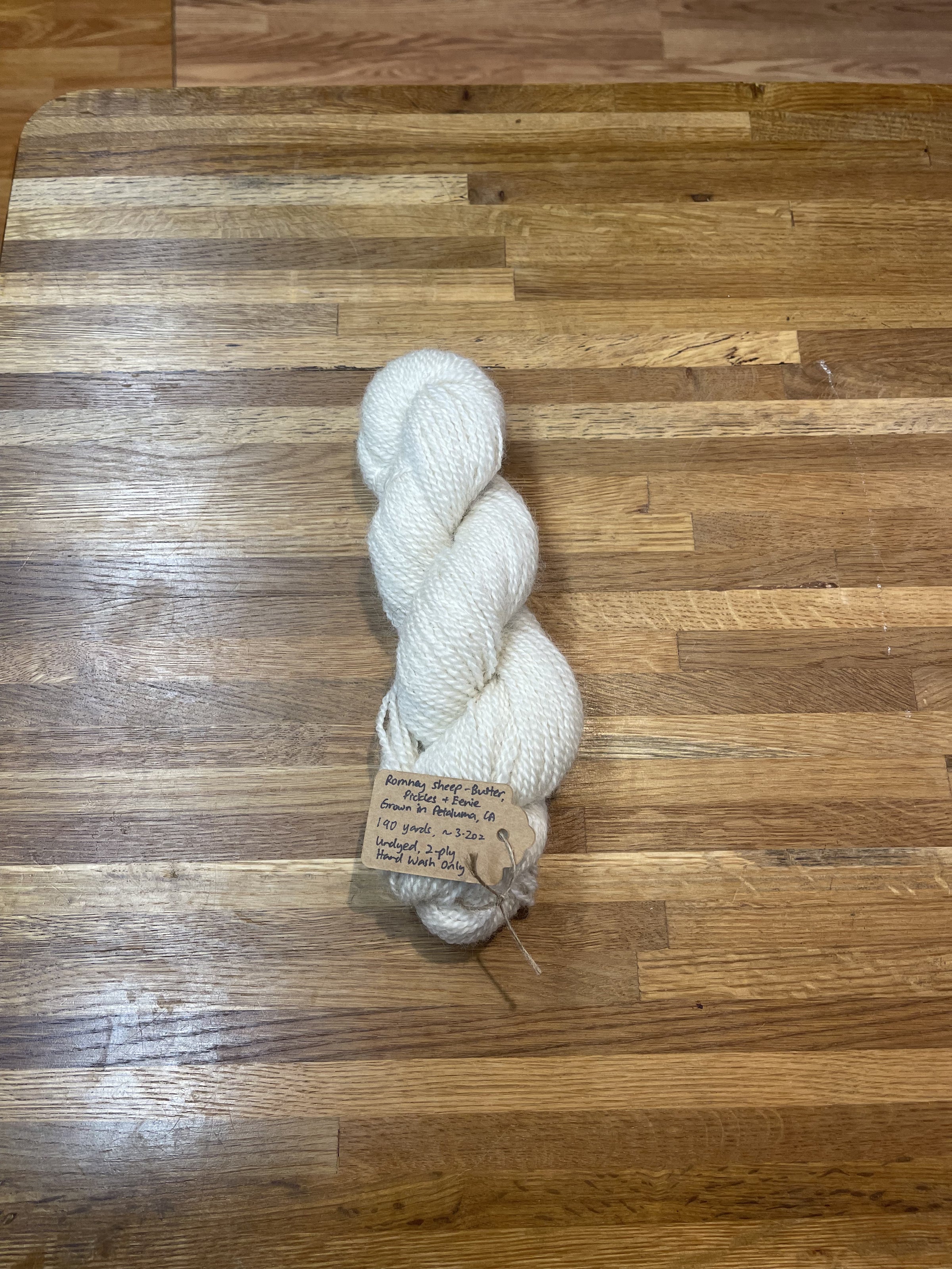 Lovely farm yarn from their Finn, Romney, and Shetland sheep.